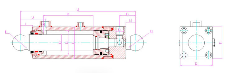 產品型號 | 行程 | 安裝距 | 額定壓力 | L1 | L2 | L3 | L4 | L5 | L6 | D1 | D2 | D3 | R1 | R2 | B1 | B2 | M1 | M2 |
