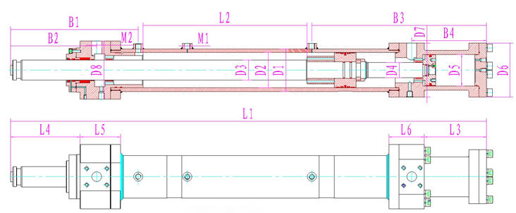 產品型號 | 行程 | 安裝距 | 額定壓力 | L1 | L2 | L3 | L4 | L5 | L6 | D1 | D2 | D3 | D4 | D5 | D6 | D7 | D8 | B1 | B2 | B3 | B4 | M1 | M2 |